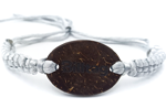 Este brazalete único está elaborado con cáscara de coco reciclado, proporcionando un aspecto rústico y atractivo. Este modelo tiene una gran resistencia debido al material natural y muy resistente usado. Ideal para eventos en playas, resorts o temáticas relacionadas con la naturaleza. Este diseño existe con un corte ovalado y un enfoque ecológico.